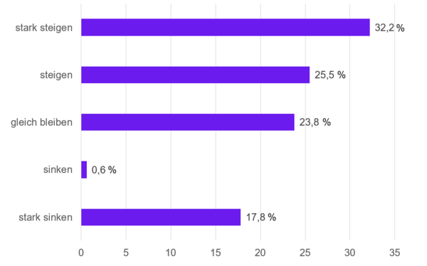 München, 09.02.2026. Insgesamt 7.969 Vermittler wurden im Rahmen der Umfrage befragt. Ein großer Teil der Befragten erwartet bis zum Jahresende eine positive Entwicklung des deutschen Leitindex. 25,5 % der Vermittler gehen davon aus, dass der DAX steigen wird, weitere 32,2 % rechnen sogar mit einem starken Anstieg. Damit erwartet insgesamt deutlich mehr als die Hälfte der Befragten eine positive Entwicklung des deutschen Aktienmarktes bis zum Jahresende 2026. 23,8 % der Vermittler prognostizieren hingegen eine Seitwärtsbewegung des DAX. Gleichzeitig rechnen 17,8 % mit einem starken Rückgang des Index, während nur ein sehr kleiner Anteil von 0,6 % von einem moderaten Rückgang ausgeht. Insgesamt zeigt sich damit trotz bestehender Unsicherheiten eine überwiegend positive Erwartungshaltung unter den befragten Finanzvermittlern.